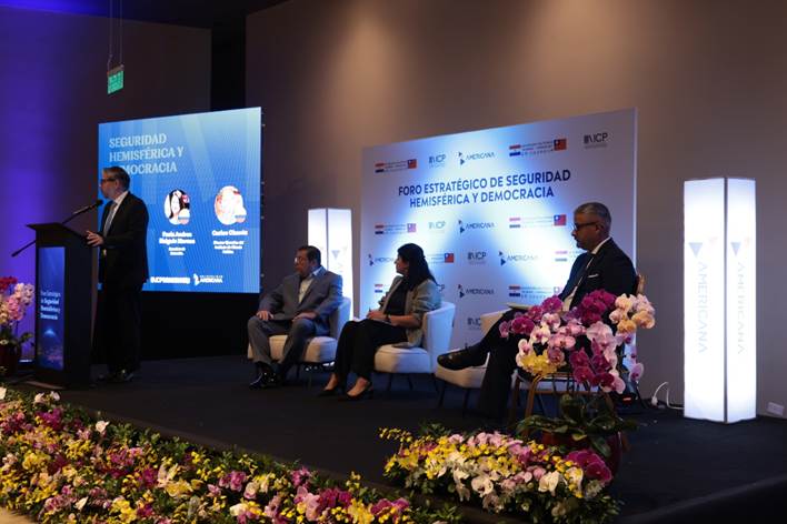 Las intervenciones de Carlos Augusto Chacón y Paola Andrea Holguín Moreno, senadora de Colombia, advirtieron sobre el deterioro de la seguridad y la democracia en América Latina causado por la creciente injerencia de regímenes autoritarios extrarregionales, especialmente China, Rusia e Irán, en un contexto de reordenamiento geopolítico global.