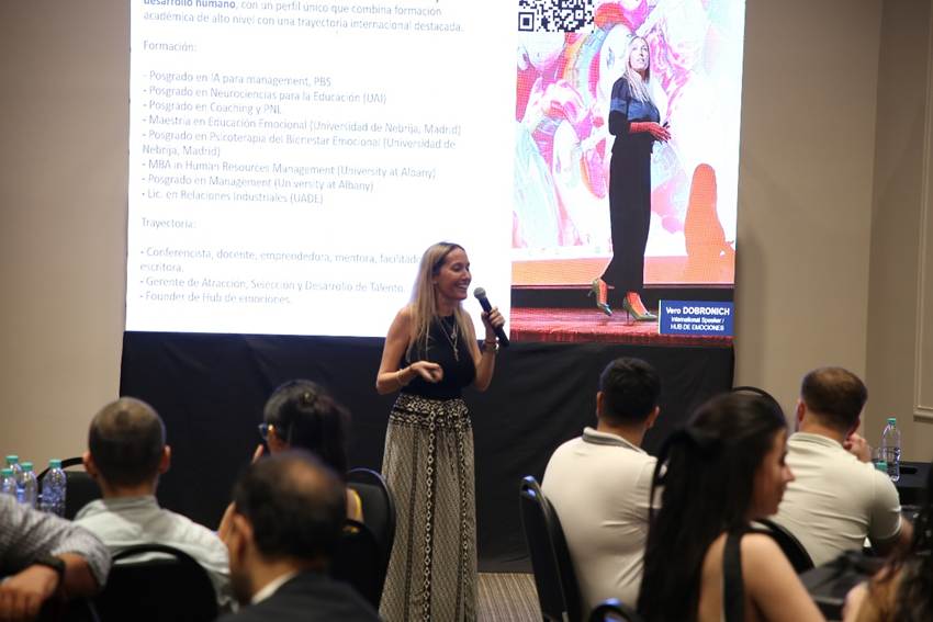 Dobronich —quien se desempeña como International Consultant y conferencista TED— ofreció una exposición dinámica que abordó las transformaciones aceleradas del mundo laboral y educativo impulsadas por la IA. “En este siglo vamos a meter cambios equivalentes a 120.000 años de evolución. Nunca en la historia de la humanidad recibimos tanta información como ahora”, señaló, al tiempo que advirtió sobre la urgencia de adaptarse.